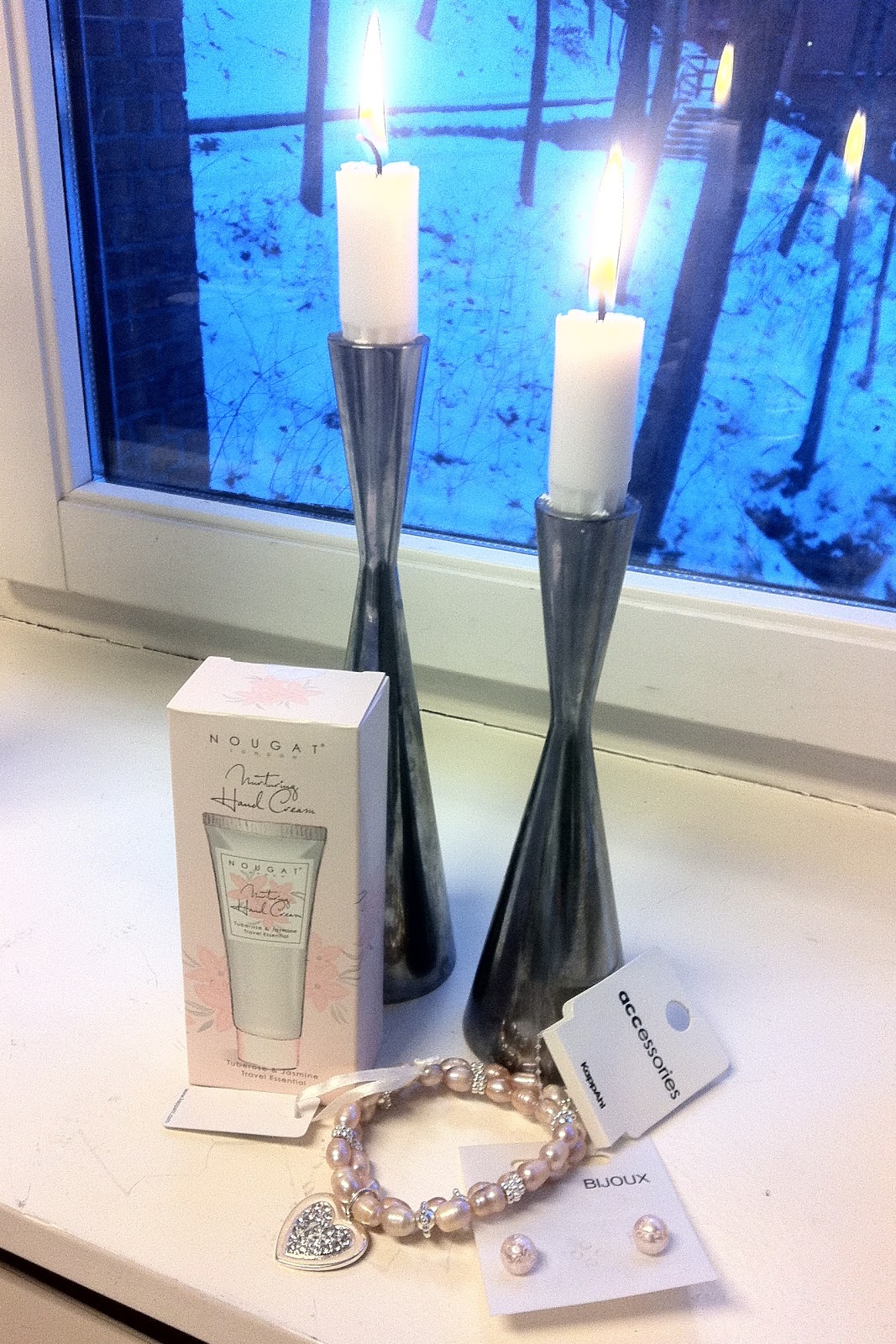 Og bestissen min på jobb hadde kjøpt nydelige smykker til meg, i ekte Cecilie-stil (lyserosa). Snille kollegaene mine! Sist men ikke minst; istedet for vin fra min arbeidsgiver (som er tradisjon her) hadde jentene kjøpt en fantastisk blomst og godteri til meg. Jeg drikker jo ikke vin om dagen kan man si..